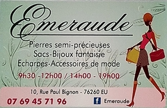 Le magasin Emeraude vous propose une gamme de maroquinerie, de bijoux fantaisie et des accessoires de mode. Corinne et son équipe à votre service depuis plusieurs années Toujours prêtes à vous conseiller et à vous rendre service. Nous sommes passionnées par notre métier et restont à votre disposition.
